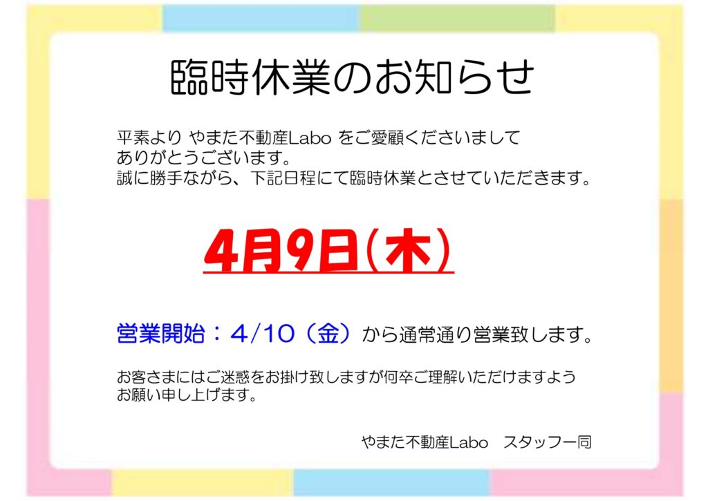 臨時休業のお知らせ